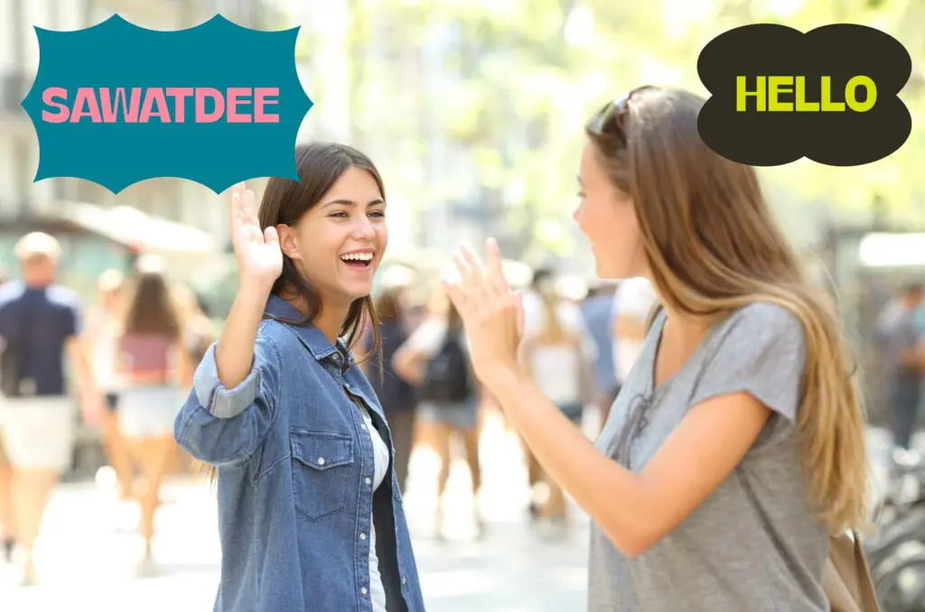 “Greetings” or “Hello”, which is usually the most common phrase everyone will use when first learning a language. Kha is for females and Khap is for males and is a phrase of respect and politeness.