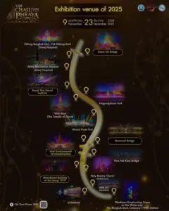 - 无人机表演:每周五(500 架无人机)和周六(1000 架无人机)晚上 8:45 在纪念桥附近举行(Phra Phutthayotfa 桥)。.